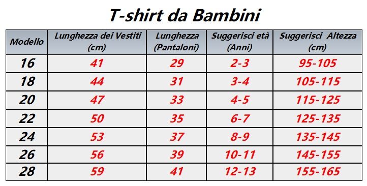 16=95-105CM (2-3 Anni)